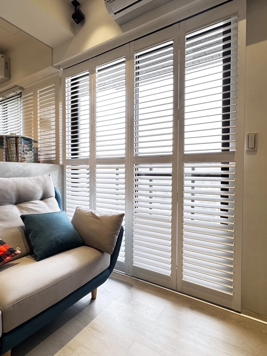 不會讓小空間顯得厚重;調光角度細,白天能精準控制採光;