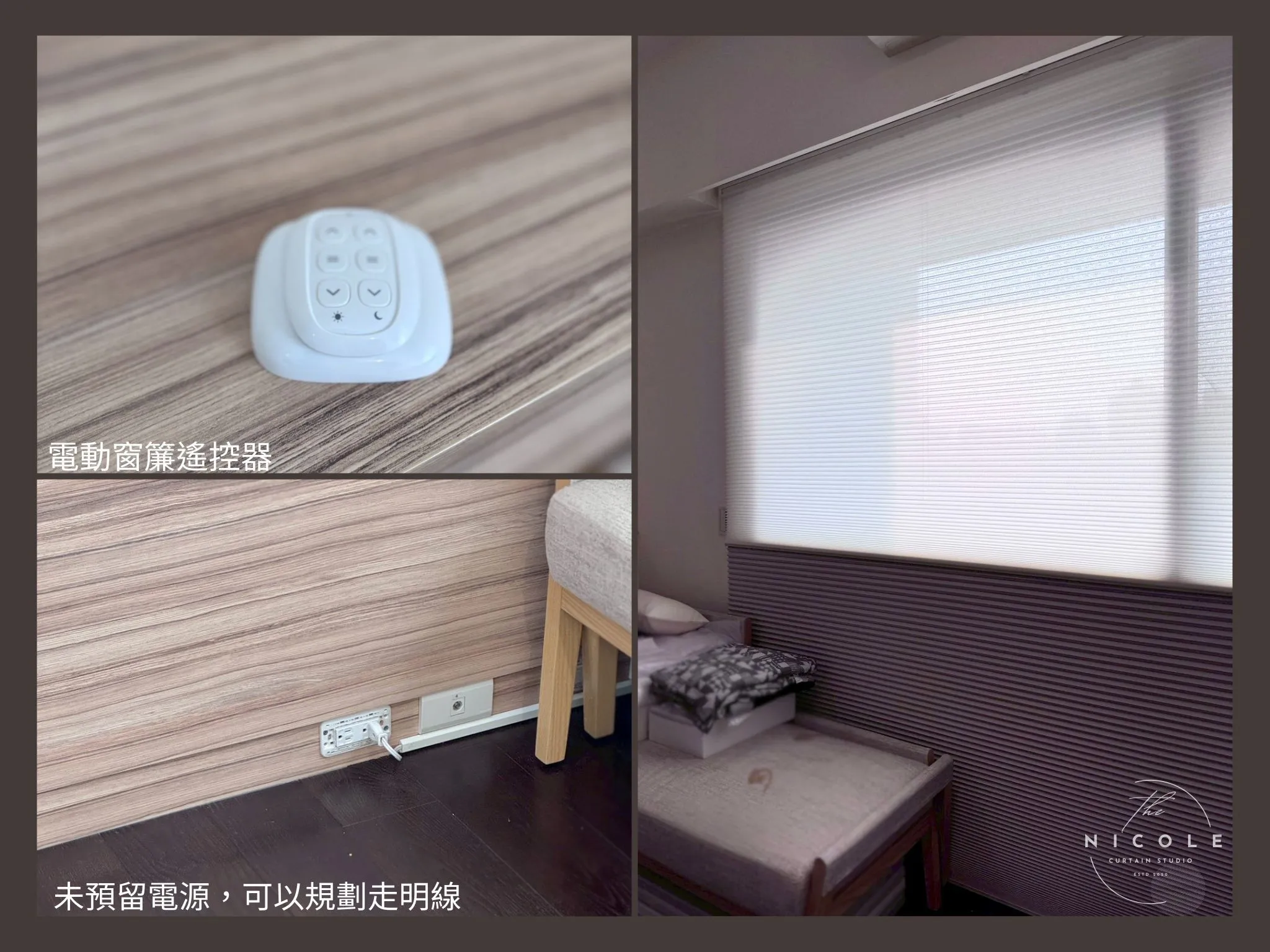 「原本以為窗簾只是完工後補上的配件,實際裝好才發現,整個家的光線、隱私感跟空間質感真的差很多。客廳的穿越簾讓白天光線變得很舒服,不會太亮也不會太悶;孩子房的電動風琴簾操作很方便,午睡和早晨起床都更好安排;主臥雙層布簾拉起來後,整個舒眠感很完整。廚房跟衛浴改用鋁百葉後,也比想像中更好整理。這次妮可窗簾幫忙窗簾設計不只是好看,而是真的讓生活變得更順手。」