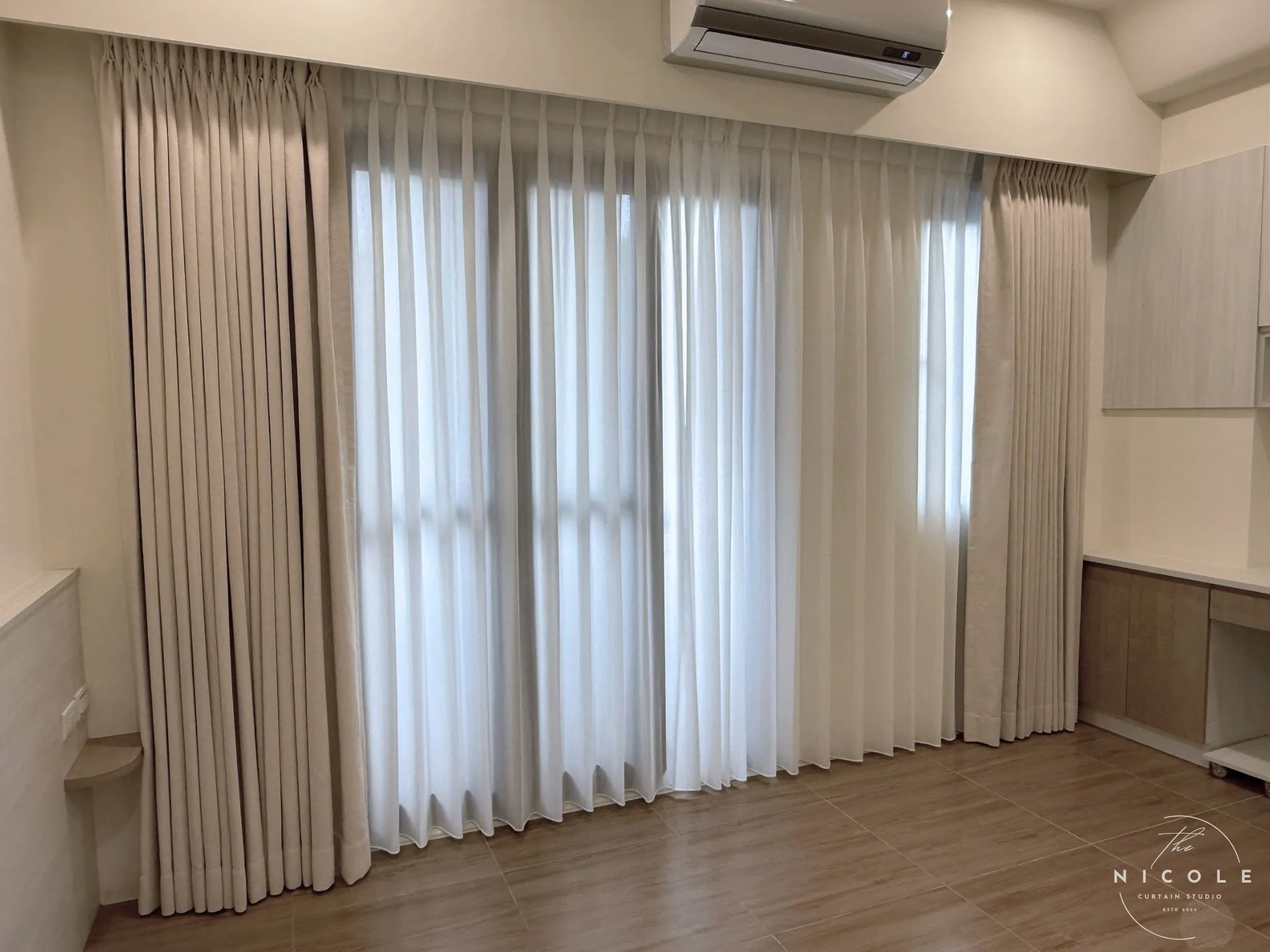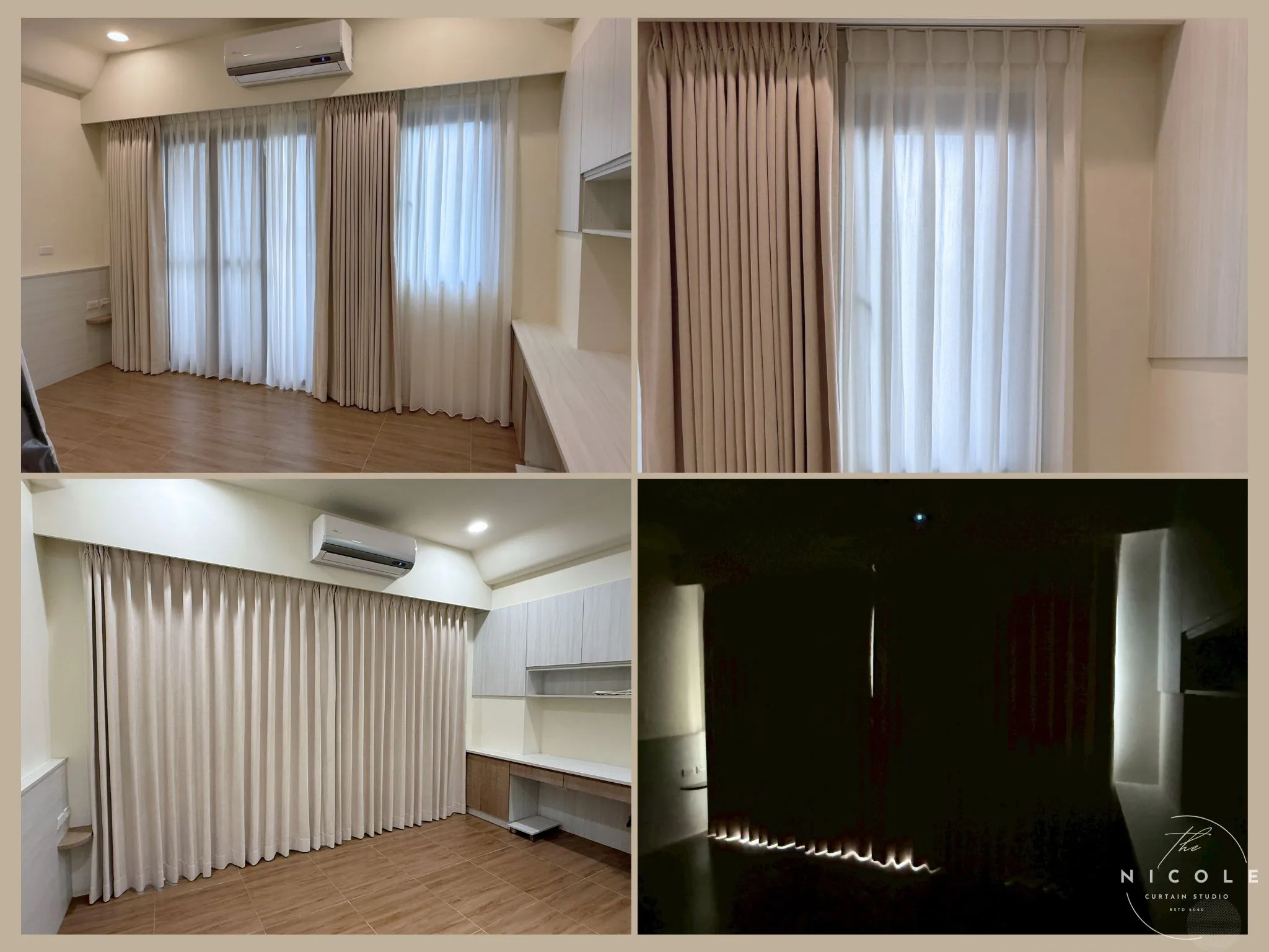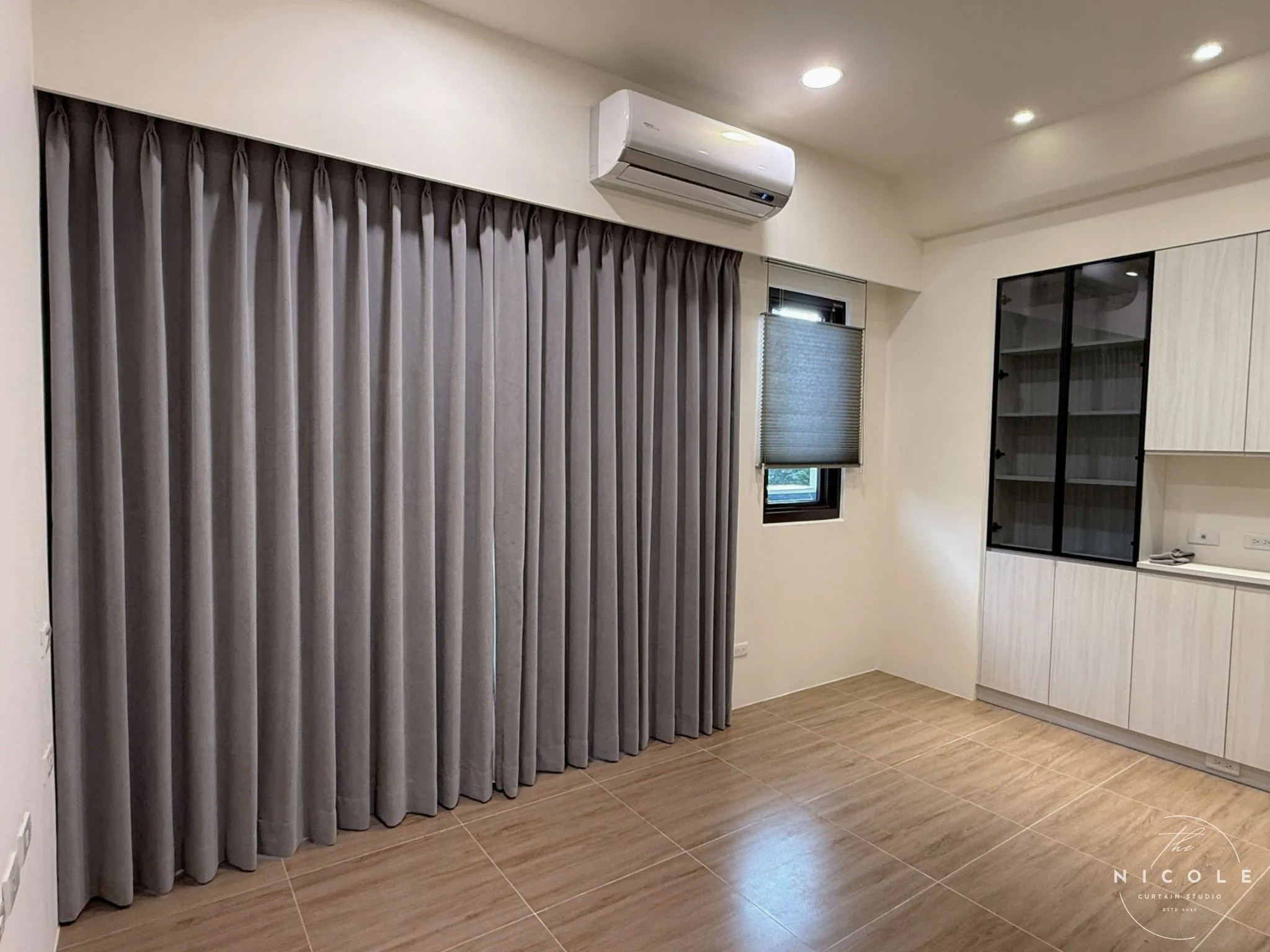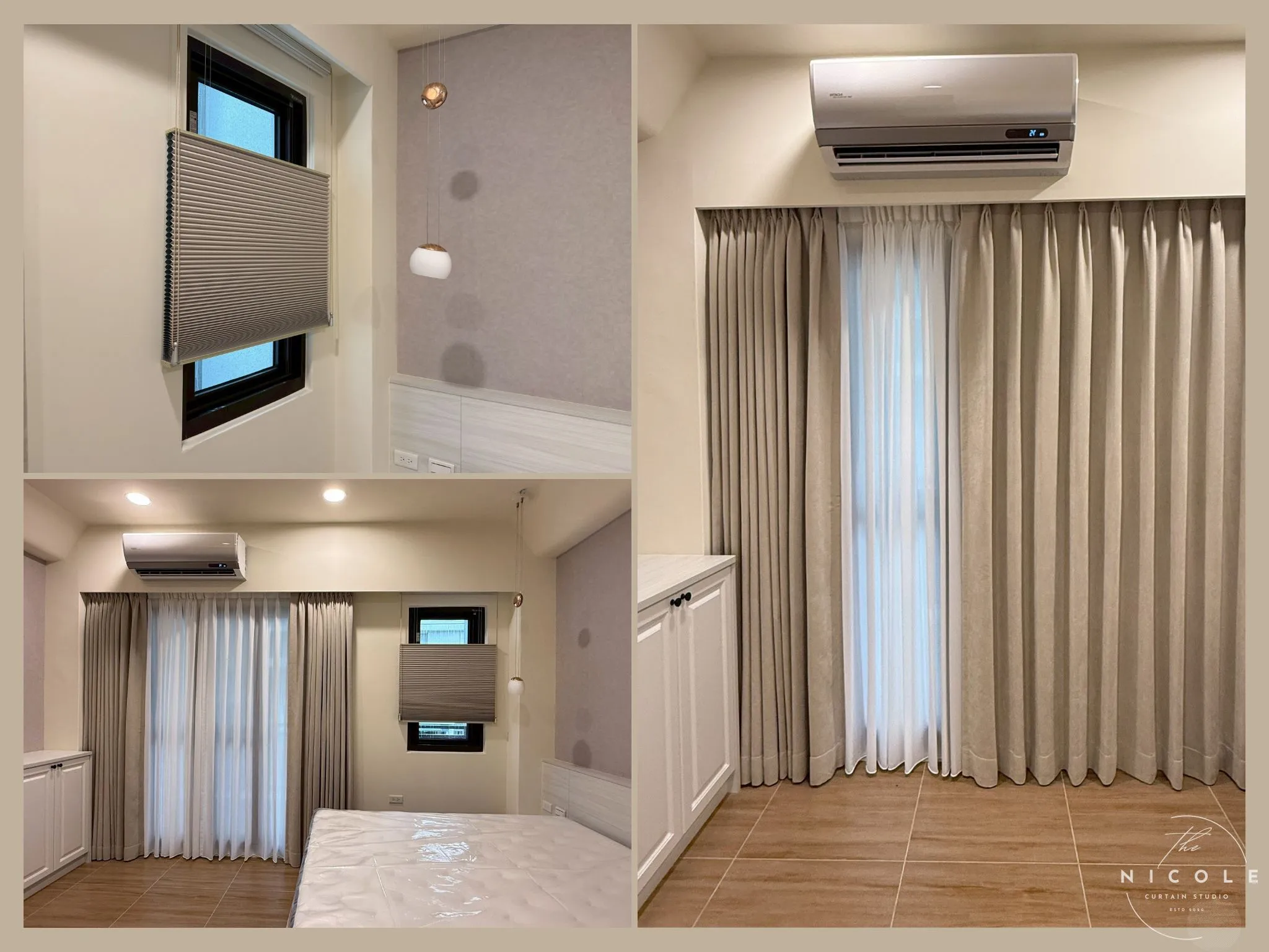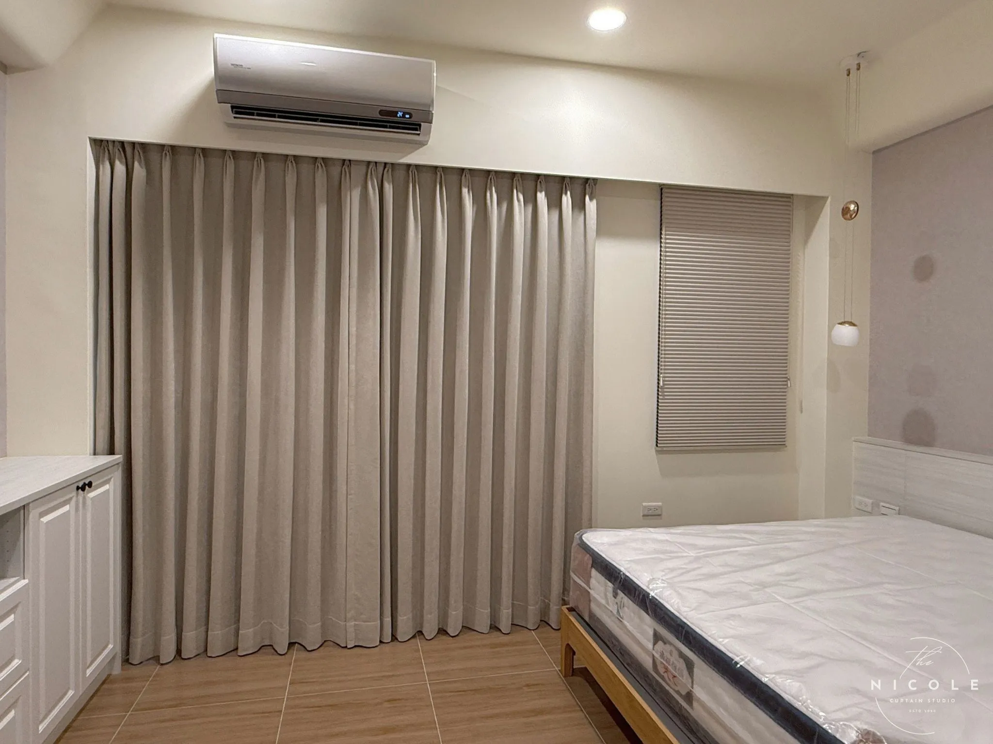 主臥空間|雙層布簾(折景簾)+遮光風琴簾